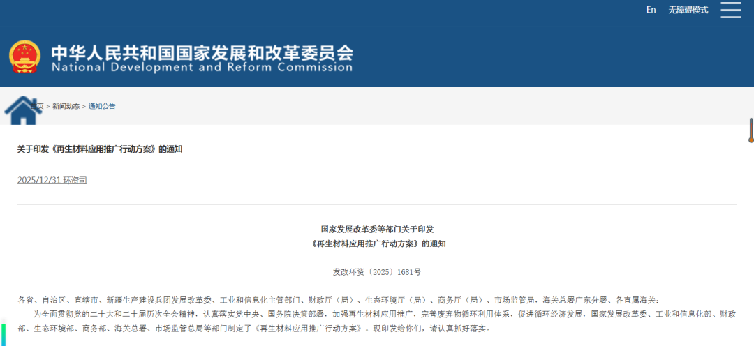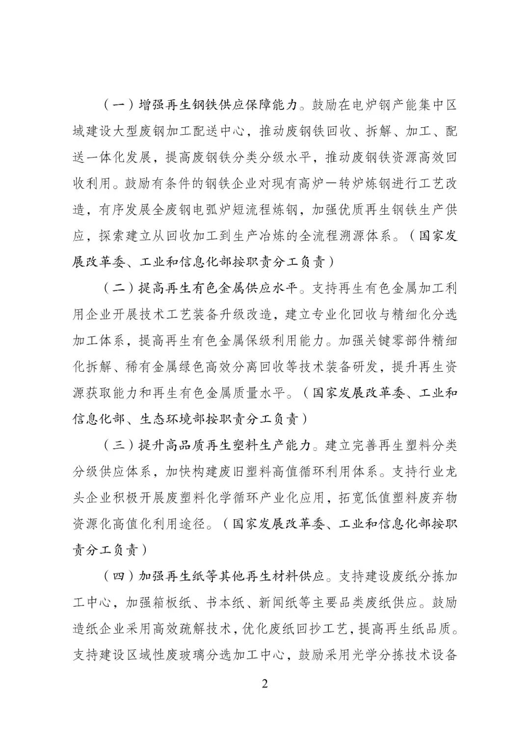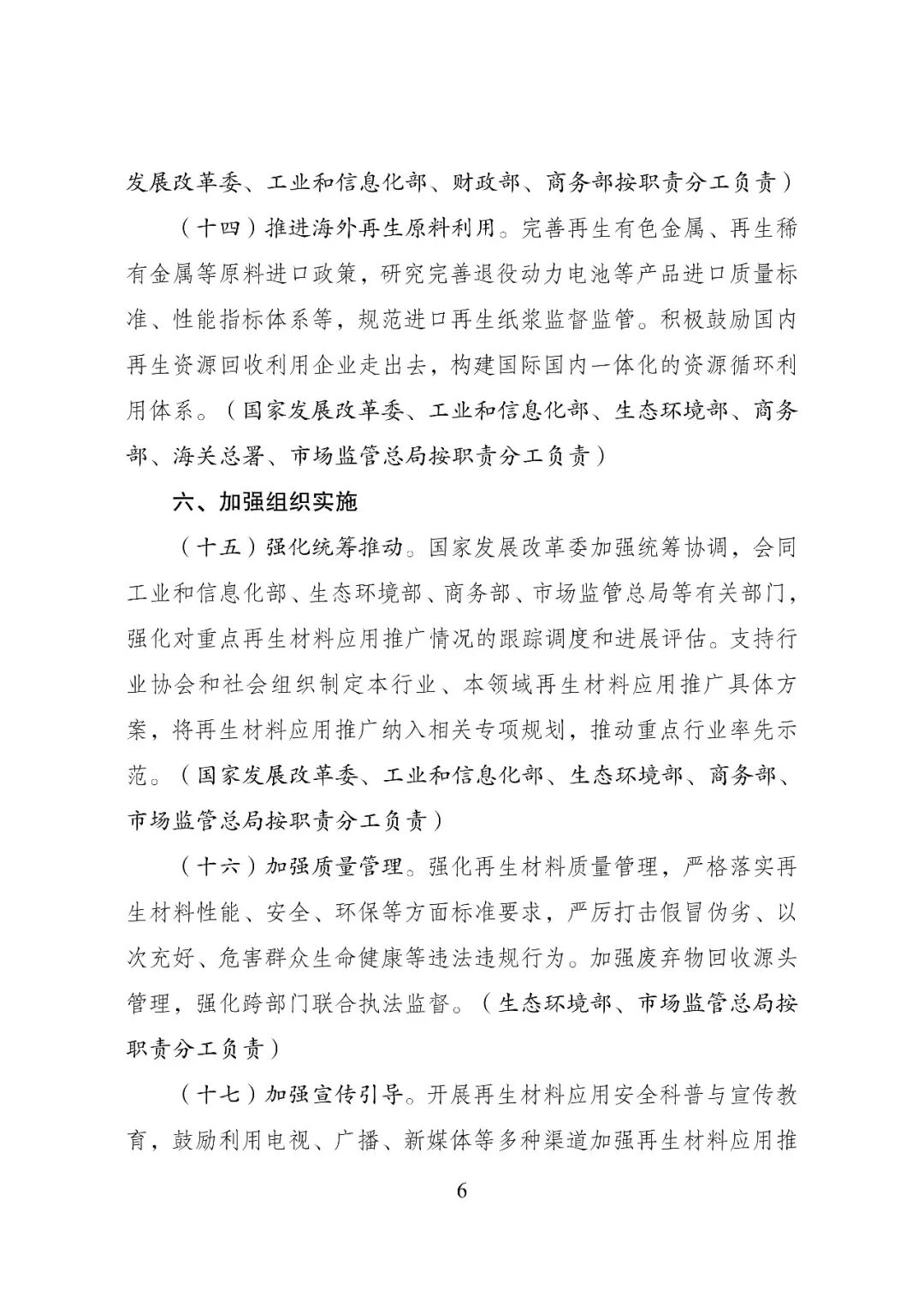 国家发展改革委等7部门出台《再生材料应用推广行动方案》