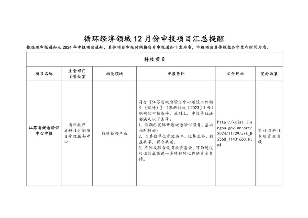 月度政策汇总是江苏省循环经济协会原创栏目,目的是为了更好服务广大会员单位。12月申报项目包括江苏省概念验证中心申报、江苏省星级上云企业创建工作、江苏省住房和城乡建设厅科技创新平台等。重要政策不错过,一起来看吧!